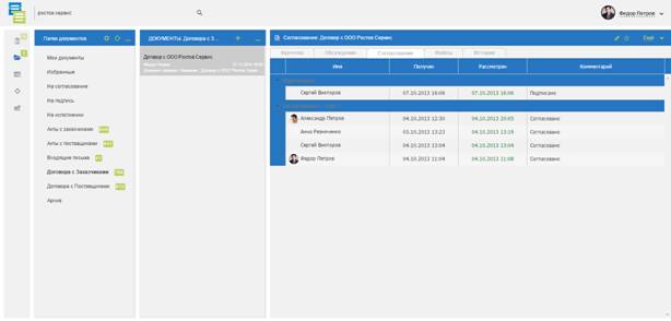 позволит быстро найти документы, вести учет сроков согласования и