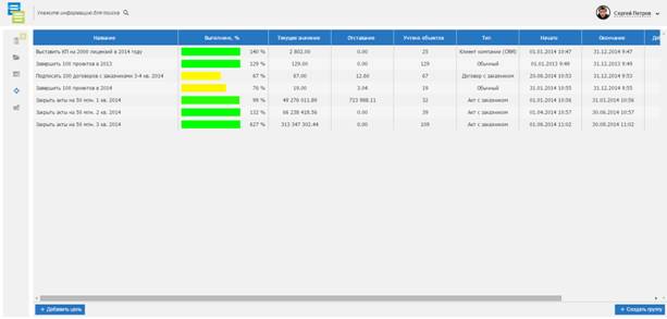 для руководителей функционал – Достижение целей. Например, можно поставить
