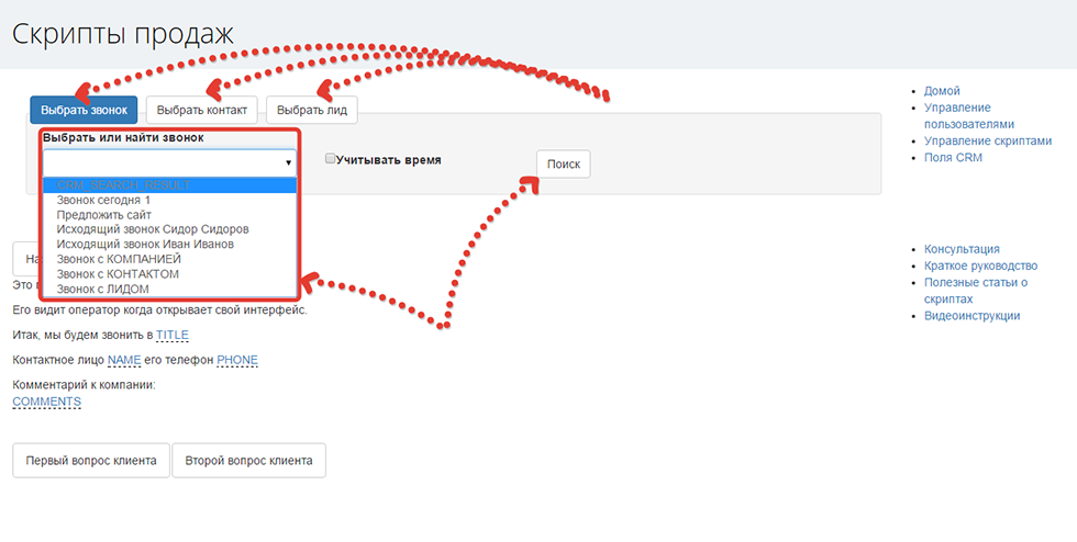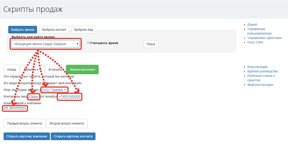 Обычно продавцу вообще не нужно открывать другие элементы системы во время звонков — вся информация перед глазами точно там, где необходимо в данный момент, открывать карточки CRM, искать глазами нужные поля, возвращаться назад к скрипту, делать пометки в блокноте и затем переносить в CRM — нет совершенно никакой необходимости.