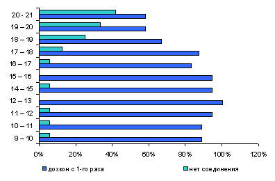 По каждому факту обращения фиксировалась его результативность, а также оценивались такие параметры, как время дозвона, факт дозвона с определенной попытки, характер заполнения времени ожидания, подготовленность оператора и т.д.