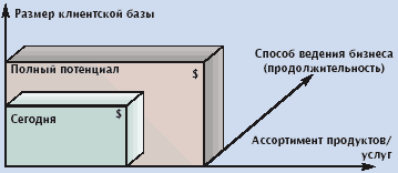 Выход можно найти в способе ведения бизнеса (при условии среднерыночного уровня ассортимента продукции и числа клиентов). Известно, что если из 100 вновь привлеченных клиентов хотя бы пять серьезных станут постоянными, то прибыль компании может удвоиться — при том, что привлечение нового клиента обычно обходится в пять раз дороже, чем усилия по сохранению уже существующих заказчиков. В связи с этим возникает задача: организовать деятельность компании таким образом, чтобы взять с постоянного клиента больше, чем он может дать в условиях среднего обслуживания. Для ее решения необходимо: