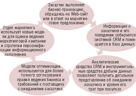 Аналитическая модель управления отношениями с заказчиками (CRM — customer relationship management) не является чем-то новым; это концепция «старой школы», развивающаяся в соответствии с современными требованиями — необходимостью выявлять предпочтения заказчиков. Аналитическая система CRM — это использование средств получения данных и математических моделей, а иногда и моделей, построенных просто на основании соображений здравого смысла, позволяющих лучше понять потребителя. Экстраполируя некие полезные представления о ситуации на рынке и поведении потребителей, компании могут изменить правила ведения бизнеса и адекватно и персонифицированно реагировать на требования заказчиков.