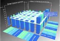 | Рис. 1. Пример трехмерного отчета о производительности работы нескольких агентов операторского центра |