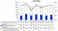 Данные отчета позволяют менеджерам увидеть, какой процент обращений к оператору контакт-центра закончился покупками. В нашем случае только 35% клиентов, обратившихся к оператору за помощью с Web-сайта компании, приобрели товар. Статистика помогает руководству фирмы ответить на ряд стратегически важных вопросов: достаточна ли квалификация операторов, привлекательно ли оформлен продукт, насколько удобен корпоративный сайт? После мини-исследования тревожные тенденции могут быть устранены, и тогда отчеты продемонстрируют эффективность принятых мер.