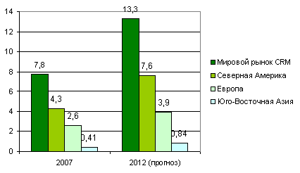 По оценкам Gartner, мировой рынок CRM-систем в 2007 г. вырос на 23,1% и достиг $8,1 млрд. В Gartner прогнозируют, что самое большое влияние на рынок CRM окажут