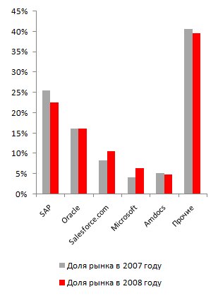 Доли рынка CRM-вендоров в 2007-2008 годах