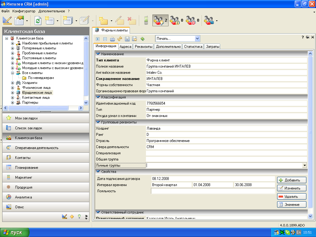 «ИНТАЛЕВ: Корпоративный CRM» - программно-методический комплекс класса управления взаимоотношениями с клиентами (Customer Relationship Management).